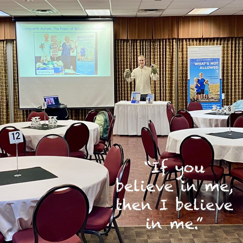 🙏 Erik and I were honoured to present the keynote address to a room of dedicated and caring early childhood educators in Courtenay, BC. The conference theme was “Gleaning Through the Power of Lived Experience,” and our talk—a mix of conversation, acting with props and read-aloud passages from What’s Not Allowed?—drew on 21 years of lived experience navigating our autism journey. Quick takeaways are featured in the photos.